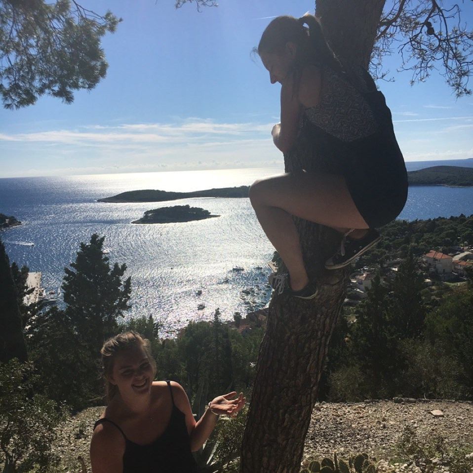 Meaghan: Unfortunately today the waves were too high to get into the Blue Cave, something we had been hoping to do. Instead, Luka offered to drive us and two other girls (shoutout Jenny and Ran!) around the island, then make us all dinner at the end of the day. It was a beautiful sunny day and we set off in the van. Every turn came to a breathtaking view of the bluest water and the quaintest little towns. We even stopped by Luka’s hometown, 20 minutes or so from Hvar. We saw the house he was born in and he told us about the town. Apparently when he was young, more than 3000 people lived there but then one year a vine disease came through and wiped out all the grapes. Now, there’s maybe 150 people living in this beautiful town high up on the hill, overlooking the sea. And it seemed like Luka knew every single one of them as he honked, yelled out the window and spoke to people on the streets. He dropped us off at the fortress in Hvar, where Savanna thought she could climb a tree.