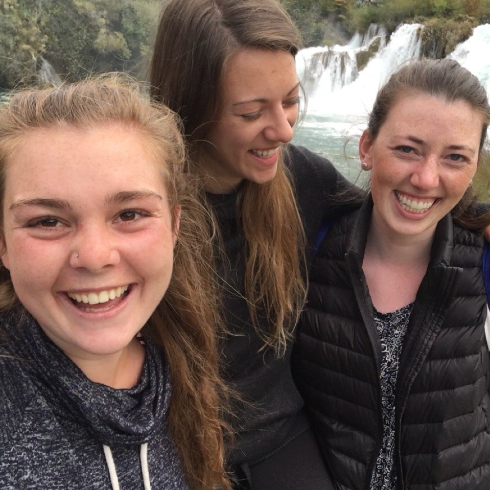 Meaghan: Today begins and ends with a ferry. We enjoyed our last sleep at Luka’s House then headed off for Split via ferry, all very excited about our plans for the day – a road trip to Krka! Amanda and her friends had told us how easy it was to rent a car and drive over to Krka, and we thought this was a grand idea. Split (haha) between the three of us, renting a car was much cheaper than a tour and we could come and go at our own times. Maddie drove, Savanna navigated, and I occasionally corrected these navigations (with gems like “other left!” and “wrong lane!”). We sang some songs, danced some dances and made it to Krka in no time.