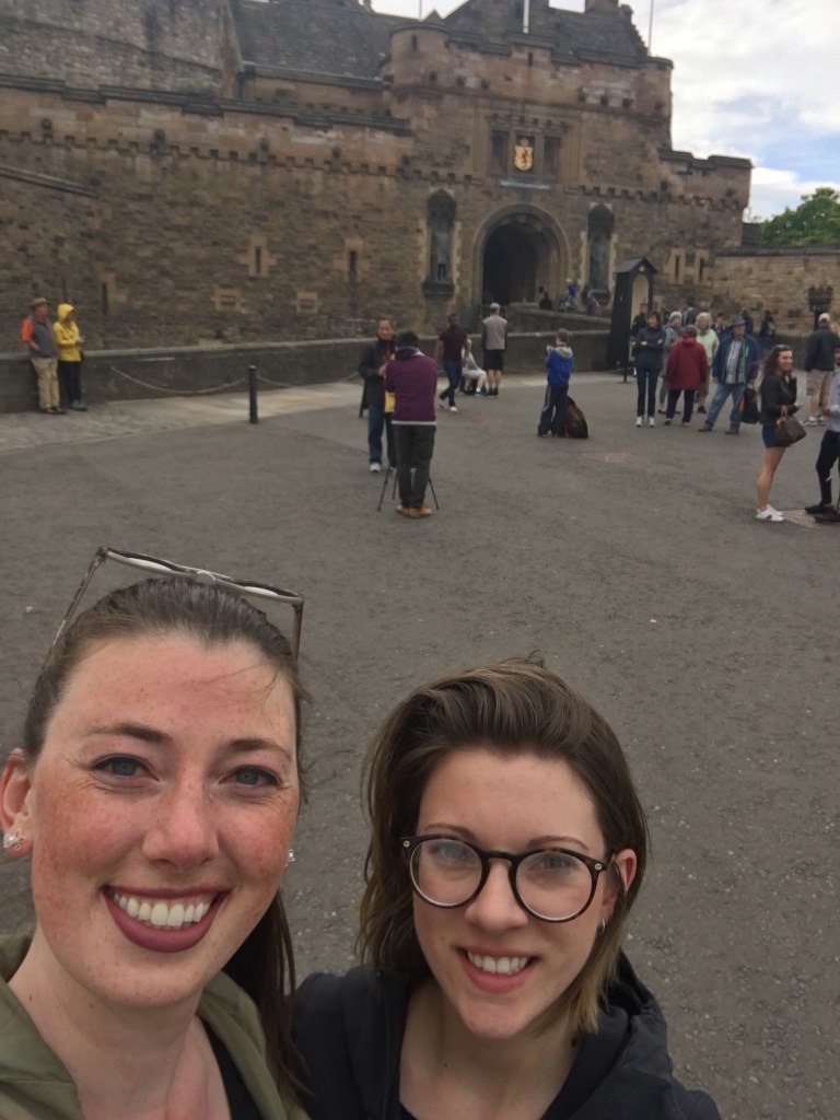 We arrived in Edinburgh and WOW THE HILLS. I knew it was hilly but somehow that didn’t compute until we were huffing and puffing our way up to the hostel. The buildings are all extremely old and impressive…so long as you look at them from the first floor up- as Sav suggested when we arrived. Castle Rock Hostel, where Sav stayed before, is right near the castle and has so much character. Each of the rooms have different themes and the beds have different names rather than numbers. There is a Latin room, a Scottish Movie room and a plant biology room. We’re in the Scottish Clan room – beds Graham and Stewart respectively.