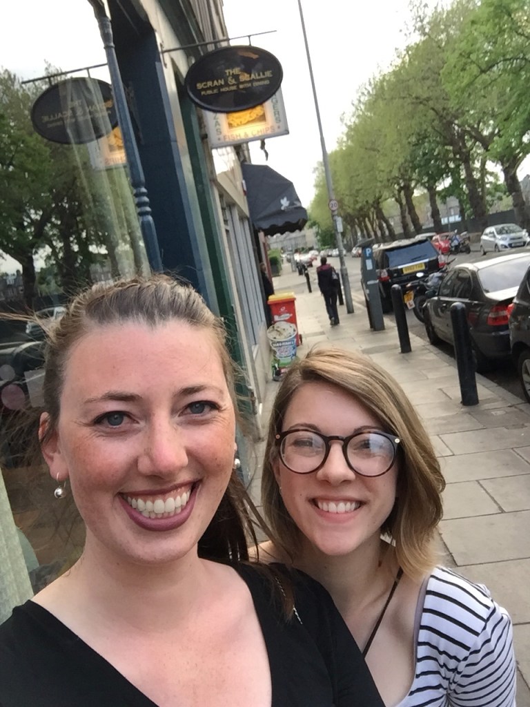 A guy in our room, Curtis, suggested a place for really good burgers and beers called Cloisters. Sign me up! It was built in an old church so the inside was all high ceilings and dark wood. We tried one beer that tasted just like chocolate. Tragically the kitchen was closed and we were ready to eat our own arms so we downed our beers. Michael, our friend from home who is a great chef and used to live in Edinburgh, said we need to eat at Scran and Scallie. We Ubered our hungry selves over to the other side of town with an extremely nice driver – how is everyone is Scotland so nice.