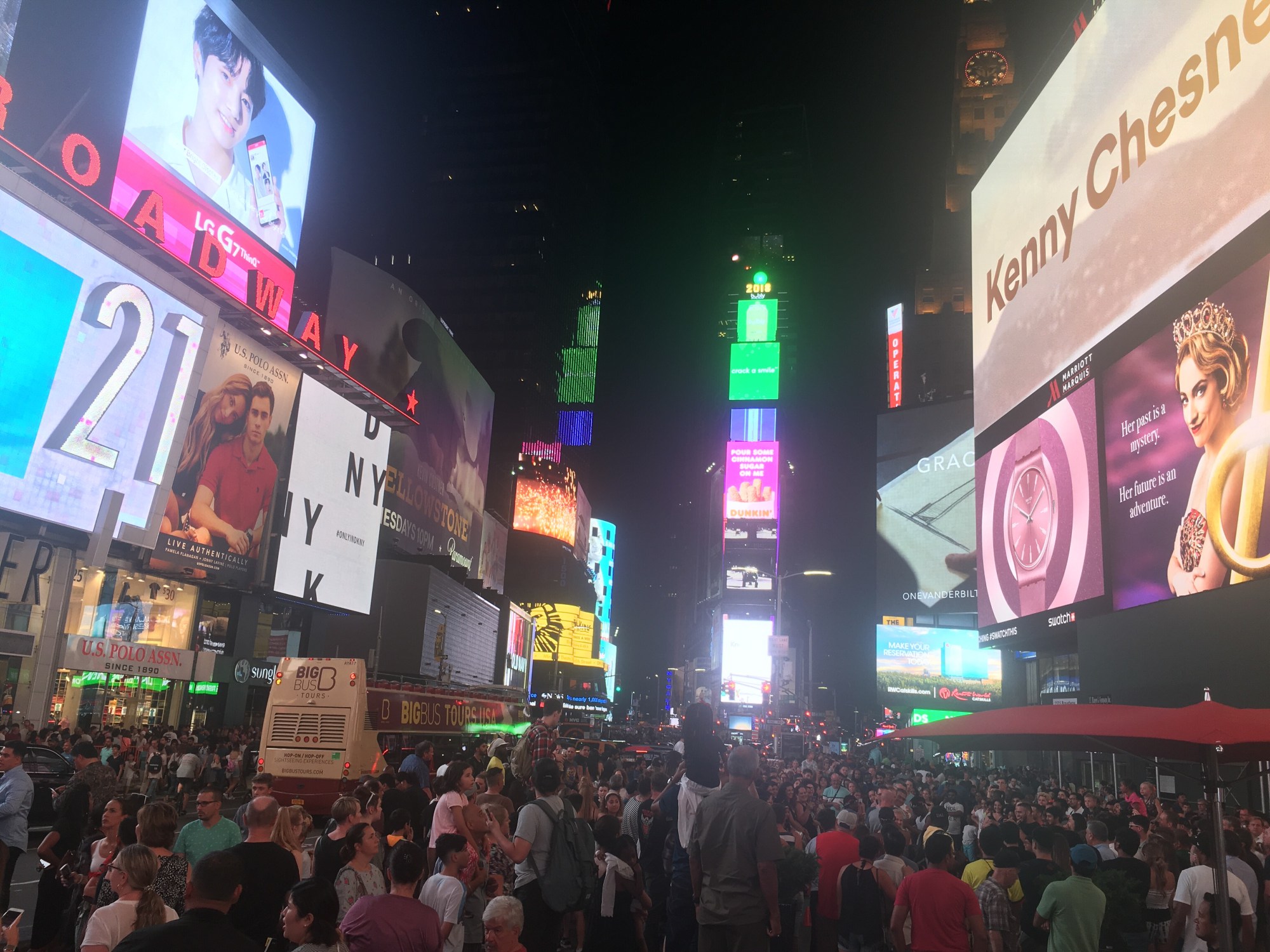 Upon arriving in Time’s Square I realized I had definitely not seen it earlier. I thought I caught a glimpse of it when I came out of that subway station but this was just a total bombardment of the senses. It was insanity! We saw everything from an adult diapered baby, to mini-mouse, to a woman only covered in body paint. There was a person dressed up as the statue of liberty, every super-hero you could imagine, and a protest about Jesus happening two feet from a one year old girls birthday party. 360 degree turns produced exactly the same staggering view of ads and lights and ads and people and ads. We stayed as long as we could muster, grabbed some ice-cream and beelined for the next street over to catch our breath and start making our way home. It was almost 11 pm by this point and we have early plans for tomorrow so a good rest is in order.
