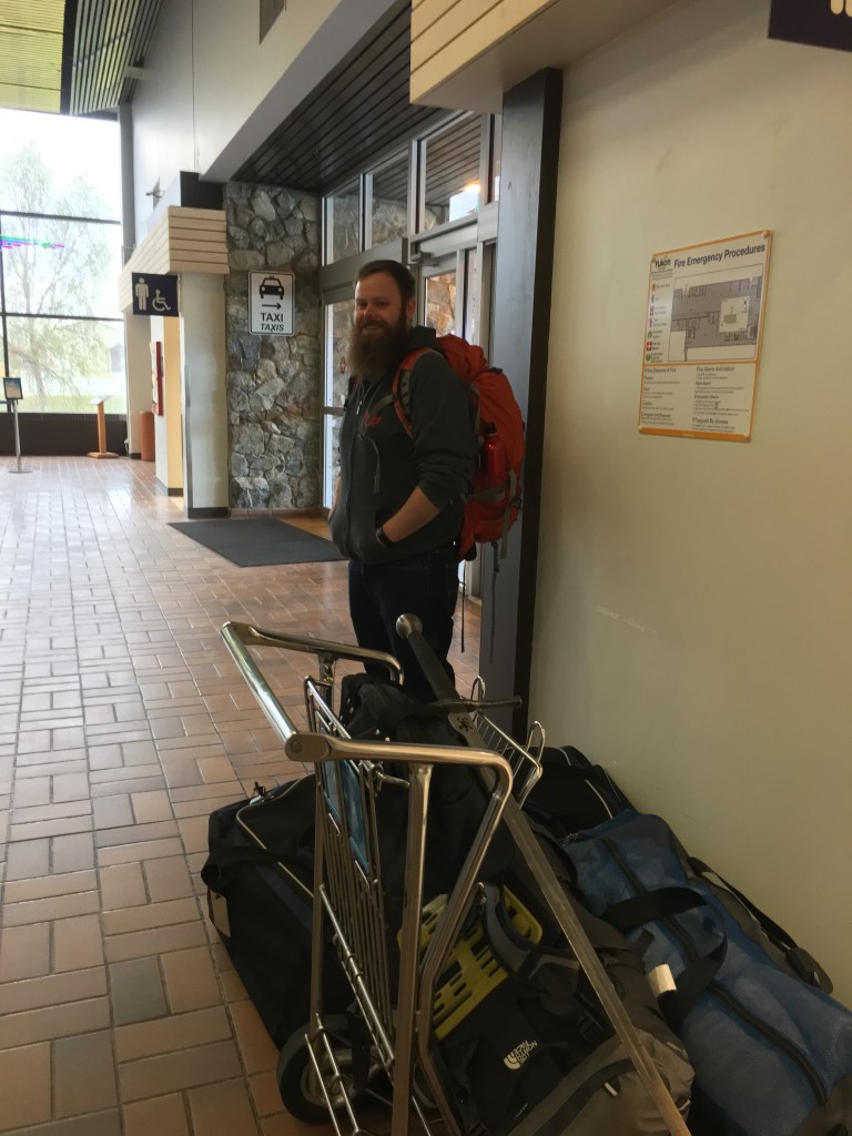 I arrived at the airport, gleefully dragging a bag full of shiny armour on one side and a long sword on the other. Ian and Land are my battle buddies for the trip, so get used to hearing their names! We all jumped on the flight to start the first leg of our 26 hour travels.