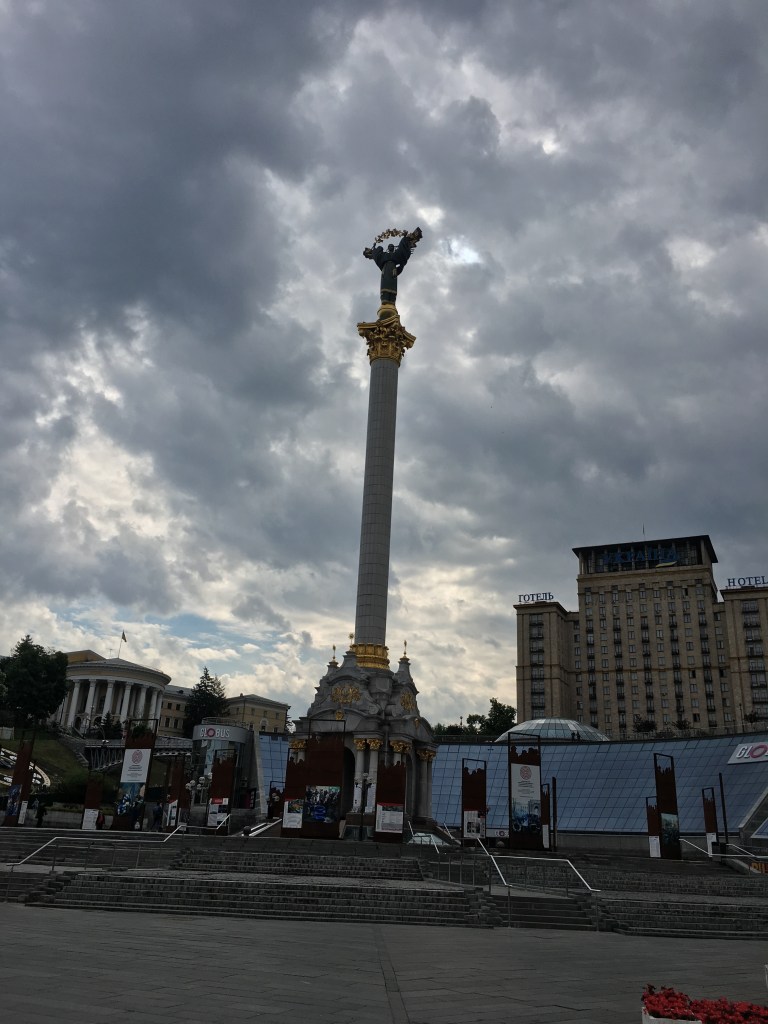Ian, Mack and I got up and went for a French breakfast around the corner from our apartment, with a view across the park of the Golden Gate, which we decided to visit later when we could get inside. Bellies full, Mack returned to the apartment and Ian and I strolled leisurely towards the main square Maydan Nezalezhnosti. Huge black and guilted angel statues stood at either end of the square, with many smaller monuments and works of art scattered in between. We talked a lot about how we wish aesthetics were more of a focus in Canadian buildings. Walking around and feeling beauty in a city is something I would love to feel at home.