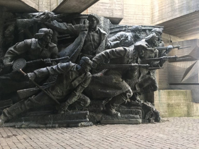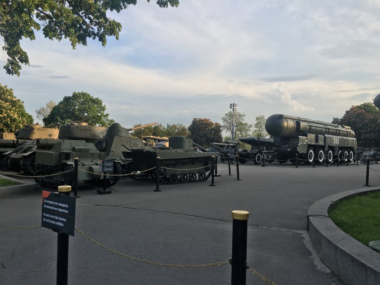 Lots of waves and tons of ‘thank you’s’ later, we made our way back into Kiev proper for a tour of an outdoor military exhibit. There were tanks, armoured missile launchers, helicopters and all types of military vehicles parked all over the walkway. Most of the vehicles were Ukrainian and decommissioned, however a few were Russian and had signs explaining that they were captured in 2014 as proof of Russia’s aggression towards Ukraine. That felt strange to read the date ‘2014’ on some placards since there’s always been a higher degree of separation between me and war. Usually when I read about violence, my parents weren’t even born yet, let alone me- so it was odd to see something so recent. The whole scene was flanked by a soviet era metal statue, the Motherland Monument (it is much larger than the Statue of Liberty) facing towards Russia. Ukrainians now say it symbolizes protection from Russia.