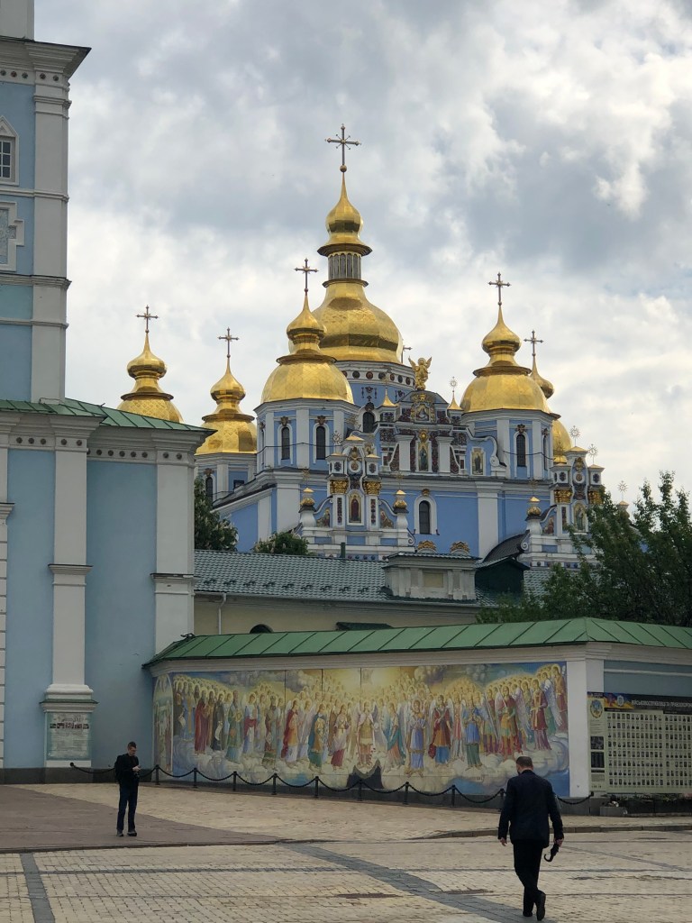I hadn’t looked at any pictures of St. Michaels beforehand and I am so glad I didn’t! I could see the shiny gold cupolas from many streets away, but was pleasantly surprised at the periwinkle-blue of the buildings as we rounded the corner. Such a happy colour! The inside was no less impressive. I’ve seen dozens of amazing cathedrals, and I have to say this is probably the most gold plating I’ve ever seen in one single room.