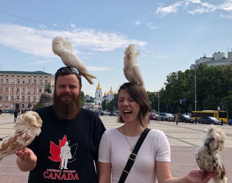 We walked down towards St. Sophia’s Cathedral, stopping just short of it to take some pictures with a few very regal looking pigeons that had the COOLEST neck feathers! They reminded me of those crêpe paper looking clown things that royals used to wear around their necks.
