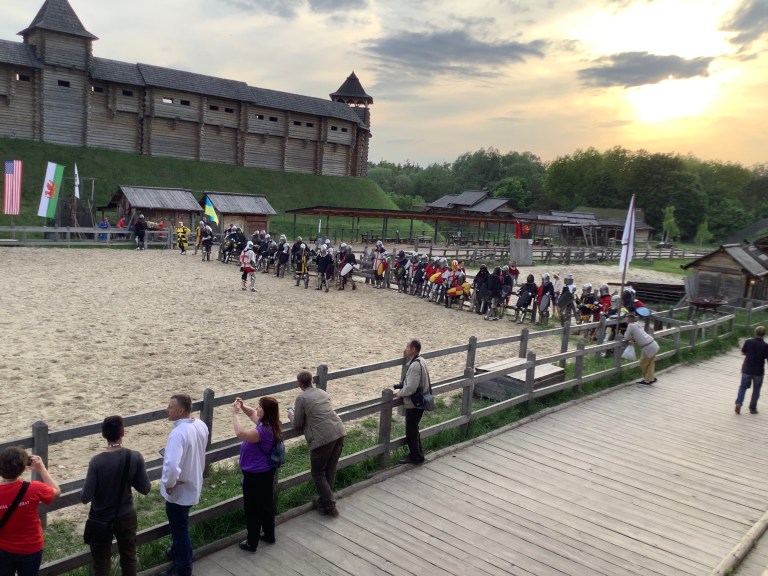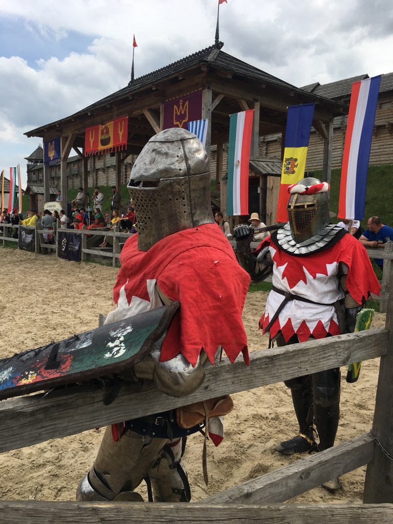 We all grabbed grilled Ukrainian chicken for dinner on the edge of the lists while the commentator cheered and yelled in the background. What an atmosphere! It’s even more exciting than I remember! Maybe that’s because I am participating in a different way this year.