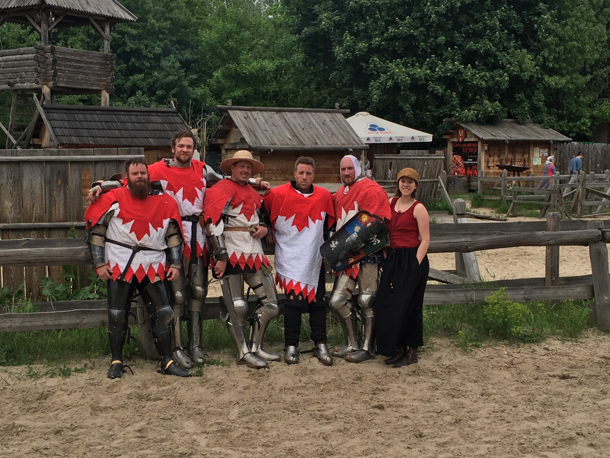 We all grabbed grilled Ukrainian chicken for dinner on the edge of the lists while the commentator cheered and yelled in the background. What an atmosphere! It’s even more exciting than I remember! Maybe that’s because I am participating in a different way this year.
