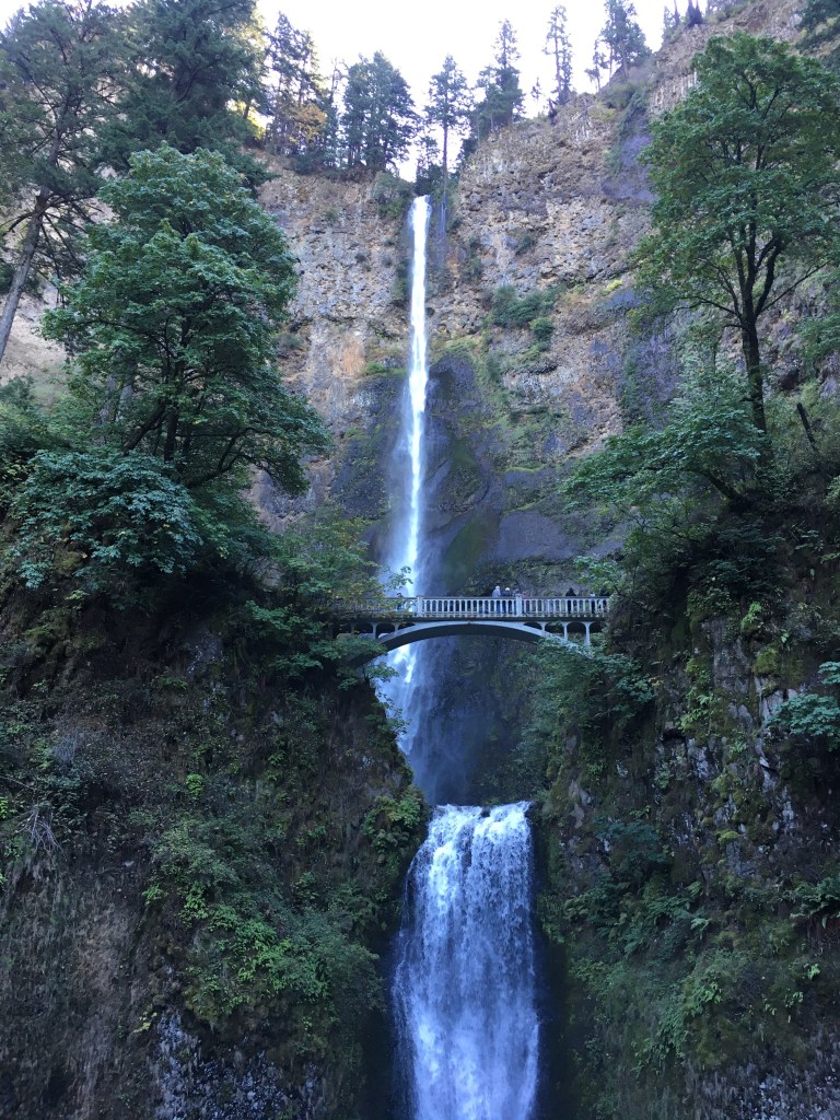 Kat and I hopped into the car first thing this morning for a little trip east towards Washington state to see the Multnomah Falls Nature Center, which was quite a bit quicker than I had anticipated! It only took about 30 minutes to get there and then 5 minutes to stroll leisurely up to the viewpoint. It was a delicate 2 tiered waterfall that had been completely. Commercialized. It was really pretty, don’t get me wrong, but it didn’t seem like it warranted its own lodge and restaurant and 4 snack carts. FOUR. There were tourists everywhere and I was a bit baffled… then Kat reminded me of two things: