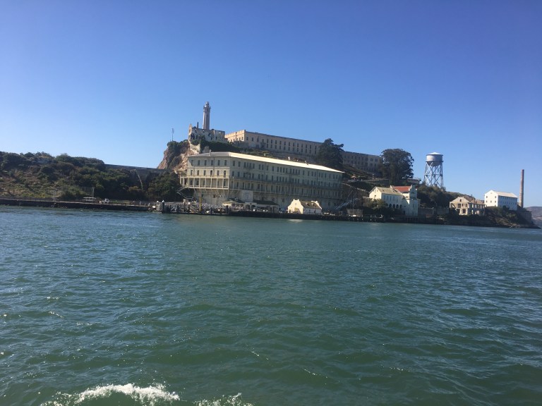 We ate breakfast at the station and caught an early train into the city. A few missed connections and a cab ride later and we made it to the ferry terminal. Right off the get go we could see Alcatraz from a distance and it was so much closer than I originally thought! Maybe two and a half kilometres across the white capped windy ocean channel. As we approached the island the lighthouse loomed off the edge and the prison came into view.