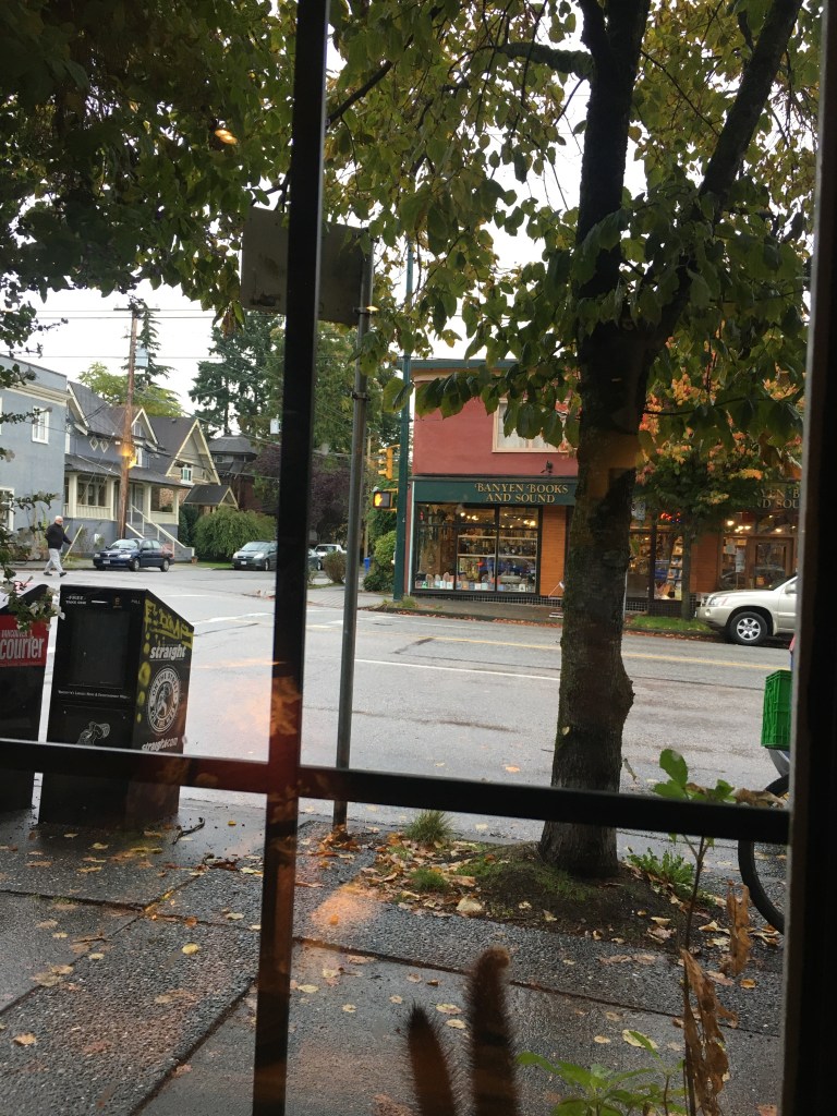 I finally moved from my window seat and explored the neighbourhood, slipping into warm old bookstores and antique shops from the rainy street. There’s a shop called Banyen Books and Sound nearby that was full of warm salt lamps and comfy hidden chairs. There was a listening booth near the front with noise cancelling headphones playing relaxing music, as if the whole place was just meant to be soothing.