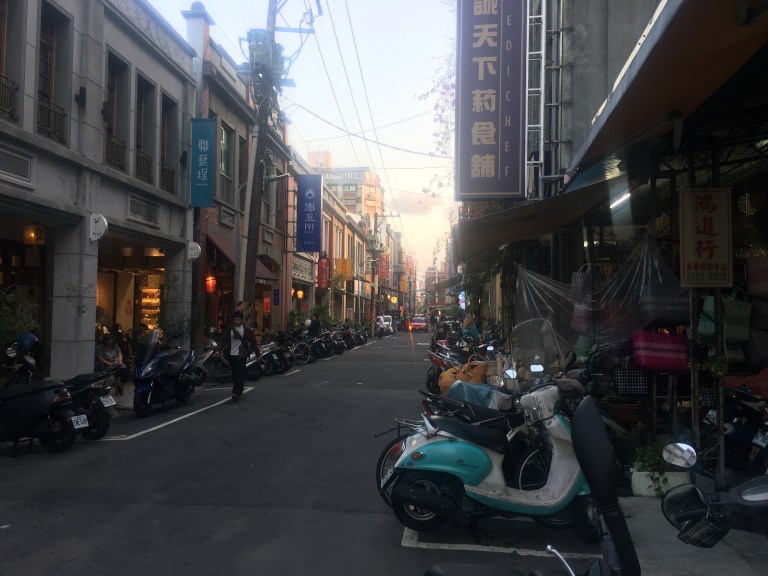 To continue with the shopping theme I wandered up to Dihua Street, a long street known for its fabric market and medicine shops. The whole street was full of crumbling buildings, some of which had been renovated so it created a very messy feeling- in the best way though. I passed by what had to have been multiple dozens of traditional medicine shops full of bags of all manner of dried goods from mushrooms to fish to herbs. Bolts of fabric hung everywhere in every pattern imaginable. One little old lady almost literally pulled me into a museum by the arm saying ‘free free free’ and it turns out it was a skinny four story museum dedicated completely to ice. Yes like frozen water. I don’t get it either apparently ice is a big deal in Taiwan from what I could glean of the exhibits. I did get to go to the roof though which had a beautiful view of Dihua street and Xiahai City God Temple (a little tiny temple nestled into the street built in 1856).