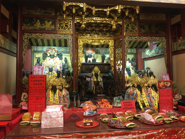 I decided to join the hostel walking tour with Caro, Thomas, and Cody, which was all about the Golden Age of Taiwan. We walked for a few hours while the guide explained a lot about the history of Taiwan. He took us up Dihua Street, which I went to a few days ago but I was super happy to go back, as it was one of my favourite places I’ve seen so far. We went inside Xiahai City God Temple and he explained all about how you can ask the god of love for a partner. BUT. You have to be extremely specific. Like if you say you want a rich, handsome Taiwanese man you have to say exactly how rich, exactly how handsome and from where in Taiwan. There’s also dishes of moon blocks everywhere, which are red crescent shaped pieces of wood you use to divine your future. So when you’re asking the god of love for your specific partner or whatever else, you throw the moon blocks on the ground and they give you an answer. You need 3 consecutive yes’s on the moon blocks for it to be a real yes from the god.