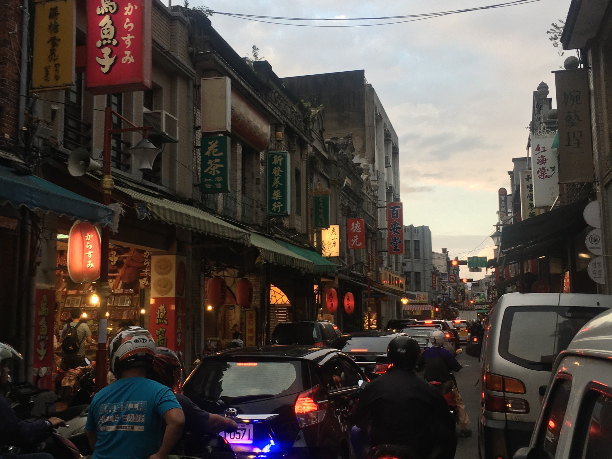 I decided to join the hostel walking tour with Caro, Thomas, and Cody, which was all about the Golden Age of Taiwan. We walked for a few hours while the guide explained a lot about the history of Taiwan. He took us up Dihua Street, which I went to a few days ago but I was super happy to go back, as it was one of my favourite places I’ve seen so far. We went inside Xiahai City God Temple and he explained all about how you can ask the god of love for a partner. BUT. You have to be extremely specific. Like if you say you want a rich, handsome Taiwanese man you have to say exactly how rich, exactly how handsome and from where in Taiwan. There’s also dishes of moon blocks everywhere, which are red crescent shaped pieces of wood you use to divine your future. So when you’re asking the god of love for your specific partner or whatever else, you throw the moon blocks on the ground and they give you an answer. You need 3 consecutive yes’s on the moon blocks for it to be a real yes from the god.