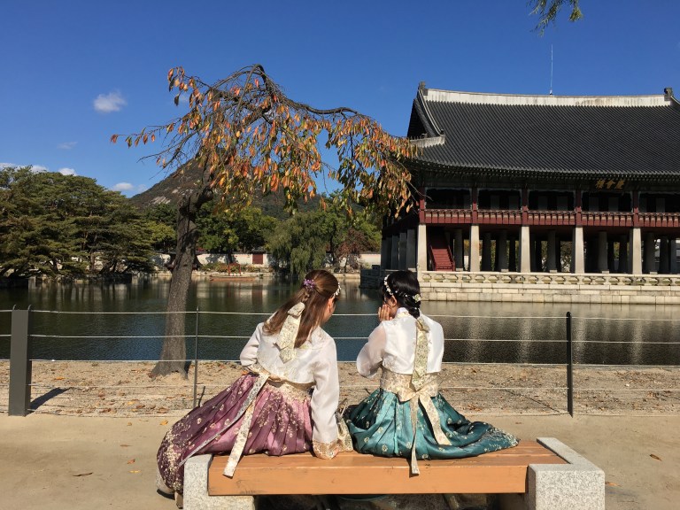 I showed up just in time to beat the really long lines, but not to miss the crowds. I was surprised a Monday morning was so busy! One thing I absolutely love is that if you dress up in traditional formalwear called ‘hanboks’, you get into the palaces for free (mind you renting the clothes is more expensive than the entry)! I was just as happy to be able to observe all the bright colourful puffs of fabric. Pearls and sparkly floral appliqués were everywhere you looked, creating a bit of a time travel feel to the whole experience (ignore the average ‘Jane and John’ tourist and you’re good to go).