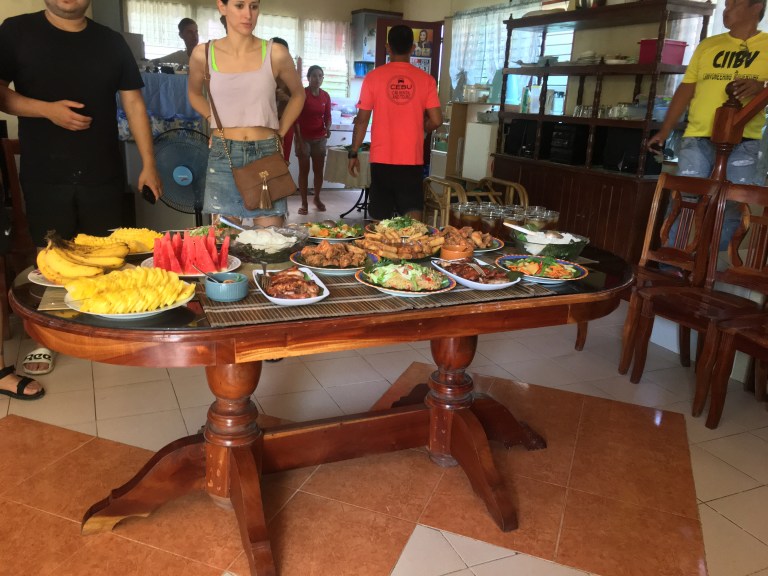 We walked along the beach towards a locals house who owns the company of the tour we were doing. His wife had made us all a huge spread of local cuisine and my god. Real Filipino food is just amazing. Loud pop music from 5 years ago played outside as we ate different kinds of pork ribs, sausage rolls, egg buns, sautéed veggies and glass noodle salad.