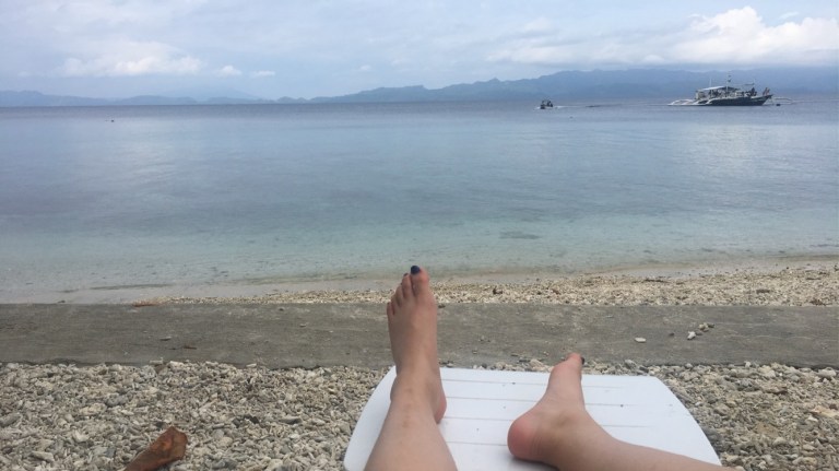 I woke up really early today, and had a terrible ringing and ache in my right ear (the one who’s drum I perforated a couple years ago). I decided it best not to push too hard and dive today. Instead I ordered Tocino (thick pork slices) and eggs for breakfast, and sat on the beach.