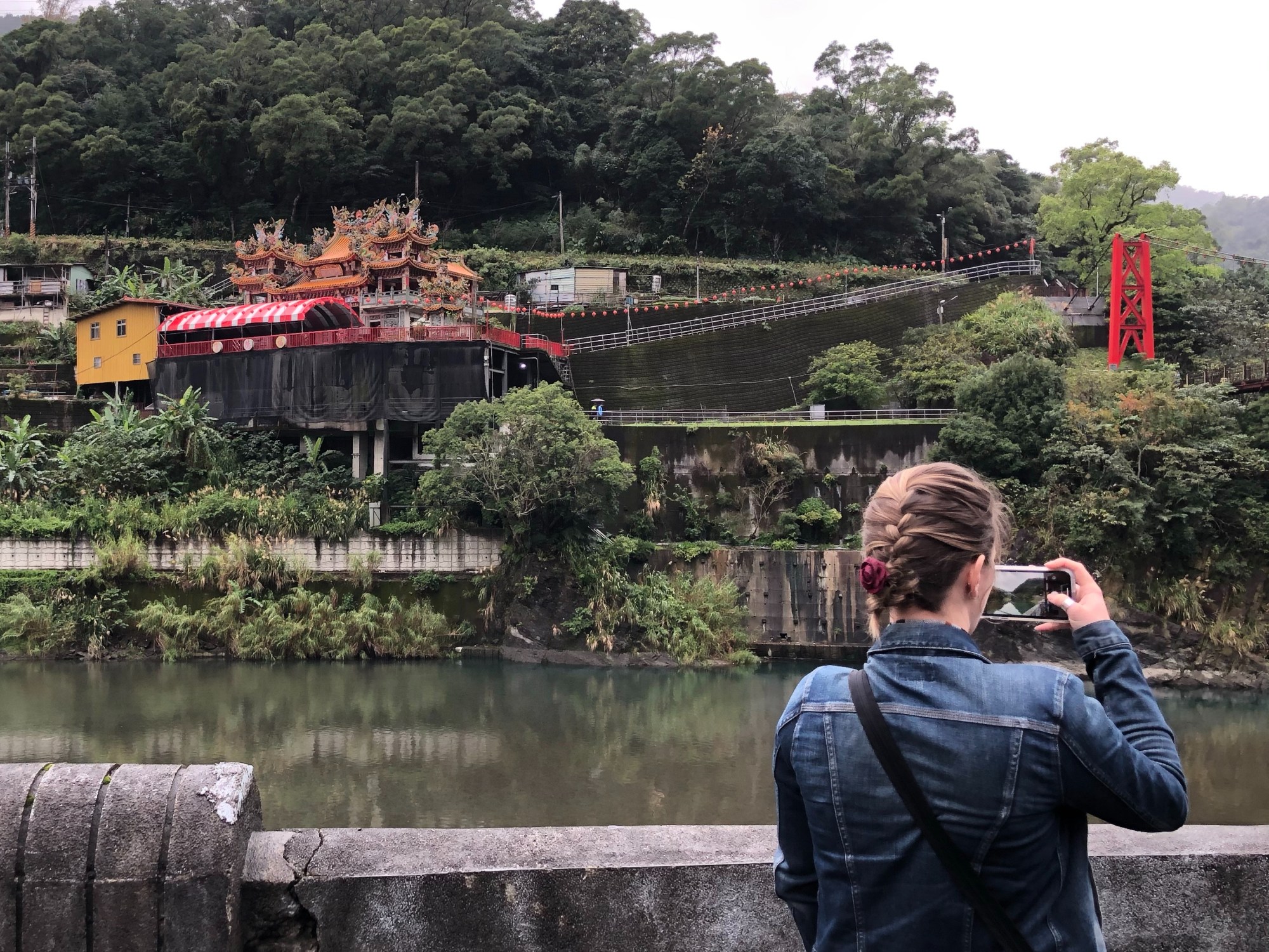 We woke up early today, excited to head out on a day trip to Wulai District a couple of hours south. The bus ride there was full of hairpin twists and turns up and over a tree covered mountain and into a gorge where Wulai came into view. The deep blue steaming river flowed underneath a red suspension bridge connecting two sides of the town. In high season apparently you can see people splashing along parts of the riverbank where naturally hot spring water flows out of the ground.