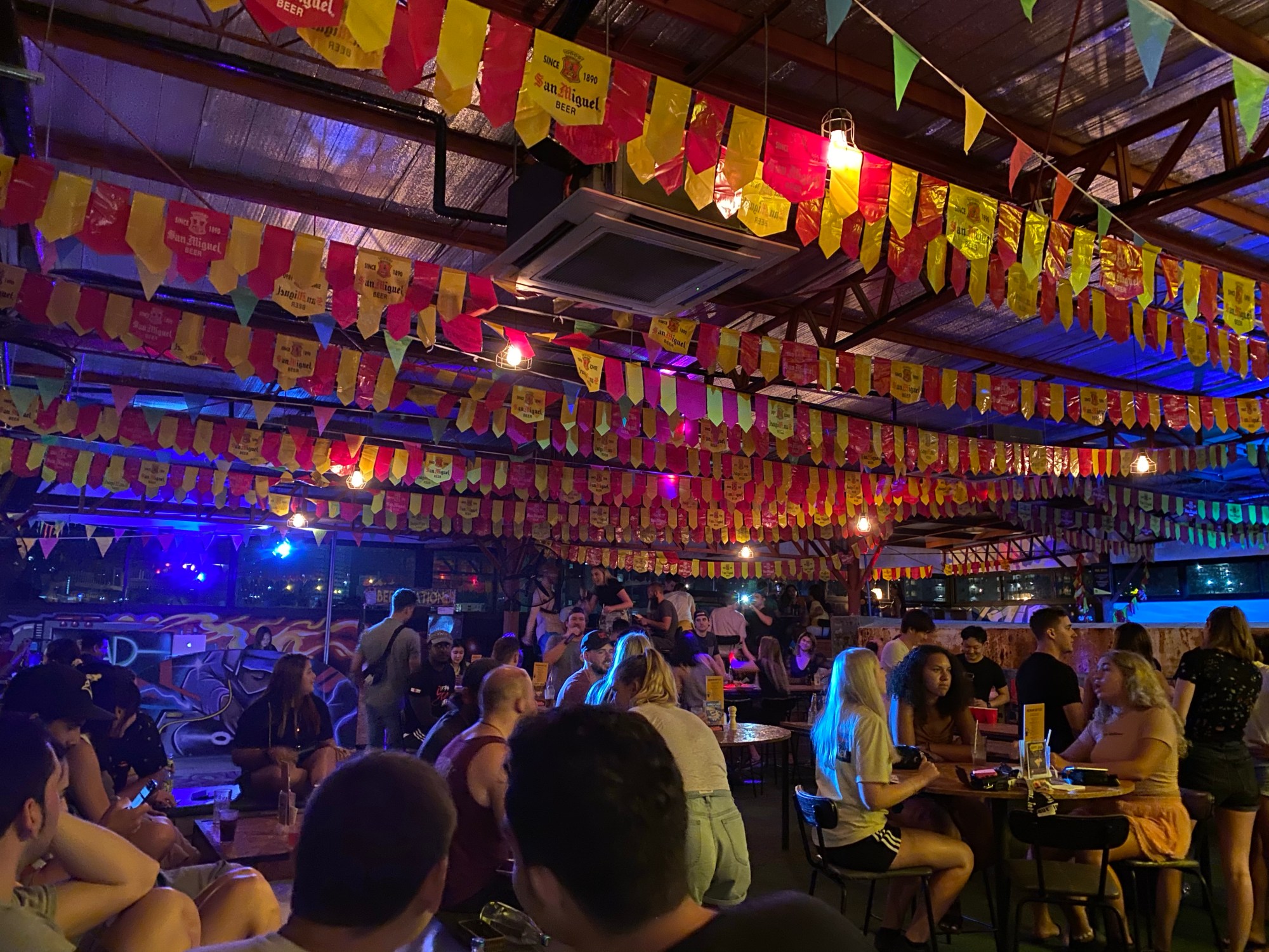 Max: We woke up to the sound of party remixes and went upstairs to get in on the action, one sisig pizza, a beer and some free highballs later (it is a party hostel after all) and we were ready to compete in the weekly music quiz. Sav, Carly, Nathalie and I had a pretty broad range of musical knowledge, so we thought we had a good chance. On top of that, to get extra points, someone from your team had to enthusiastically karaoke part of the song.