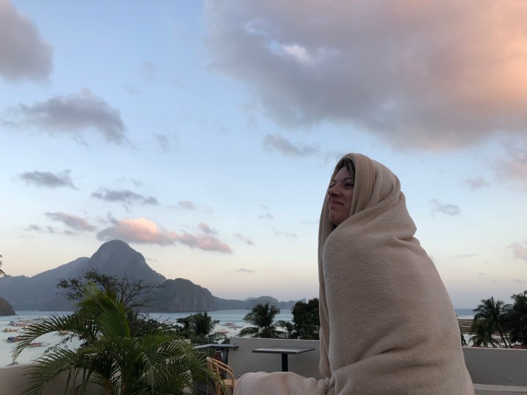 Max: At 6am, we ninja snuck out of our room to catch the sunrise (Sav even brought her blanket) on the roof. El Nido was surprisingly quiet this early in the morning and it was good to get a bit of peace. We’ve been listening to techno bangers and soap opera backtracks at 4 am for almost two weeks now! The pool on top of Frendz overlooks the ocean, so we sat by it for the morning and watched the sun slowly creep over the four islands within view. The cliffs on our own island towered straight up in front of us, as the sunlight brightened the greenery all over the tops and brought the rocky details into relief. It all felt pretty majestic.
