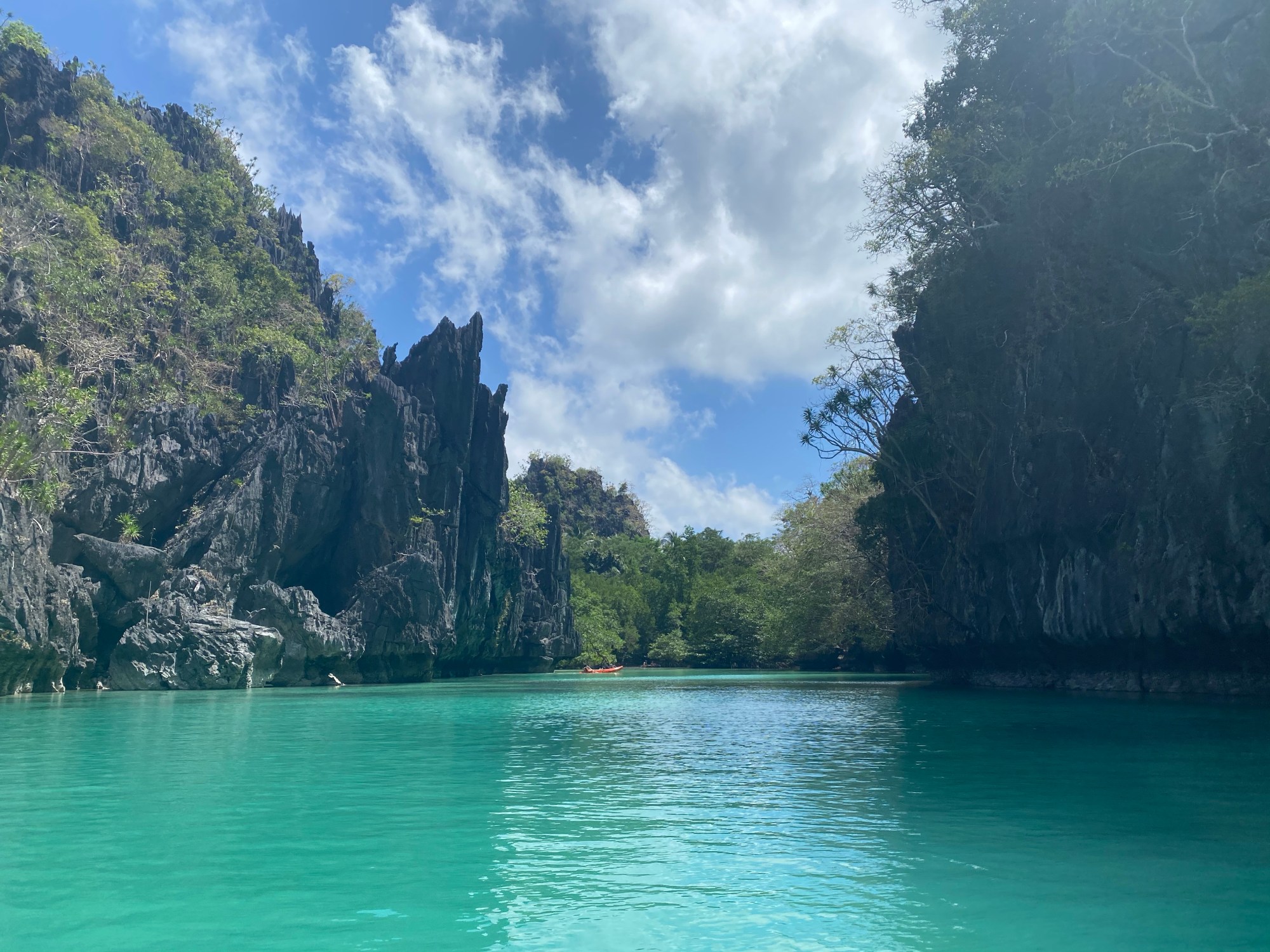 We pulled up to a beach and ate lunch, a picnic of all types of delicious fresh Filipino food. We were on the windward side of this particular little island, and it was chilly out of the water so we went exploring around to find a bit of sunlight. In one corner Max found a large monitor lizard. If you don’t know what this is I suggest you look it up they are so cool! At first we both thought it was a Komodo dragon- unaware that monitor lizards could grow to this size! It may have only been a couple of feet long but it’s large claws and fat scaly body really looked like a mini dragon. When I was able to tear Max away from the lizard, the guide brought us over to a secret little cove that we had to practically swim underwater to get into. The same rough snaggley rock dominated this little cove, and I had images of pirates stashing hidden treasure in places just like it. “But where has the rum gone?!” Small stinging plankton swam about, although that didn’t deter us from spending a bit of time joking and playing around with a few of our newfound friends. Max and Sam climbed up the side of the wall, and it took like six of us to convince them not to jump off and into the water!