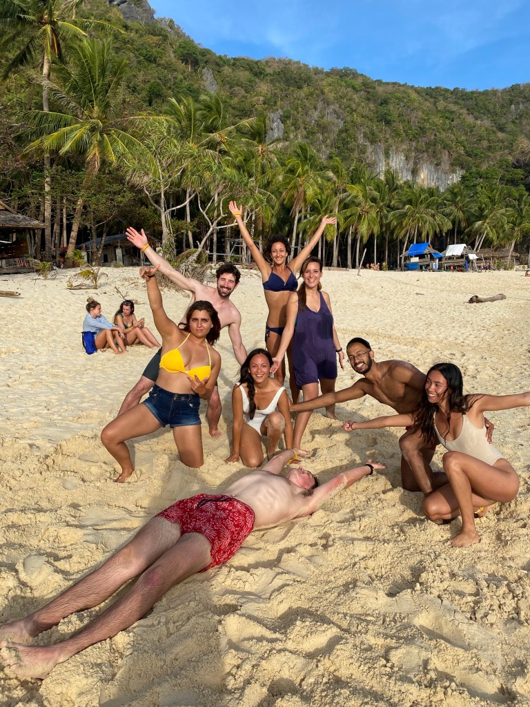 Eventually the chill started to set in, so we crossed the bay and spent the last remaining hours of sunlight on Seven Commandos Beach, taking in the warmth. The sand was even whiter and softer than lots of what we had seen yesterday, and the view of many smaller islands all around us was picturesque. Max busted out this random game where you have two people balance on each other and try to place a water bottle as far across a line as you can, without actually crossing the line. I’m terrible at this game, because I don’t have… muscles. BUT we still had a great time falling all over in the sand. A whole bunch of people joined in, trying for over an hour to figure out the trick to placing the bottle as far as they could. All the different tour guides were even watching, feet propped up on their boats, laughing as we fell in the sand and cheering when someone placed the bottle successfully.