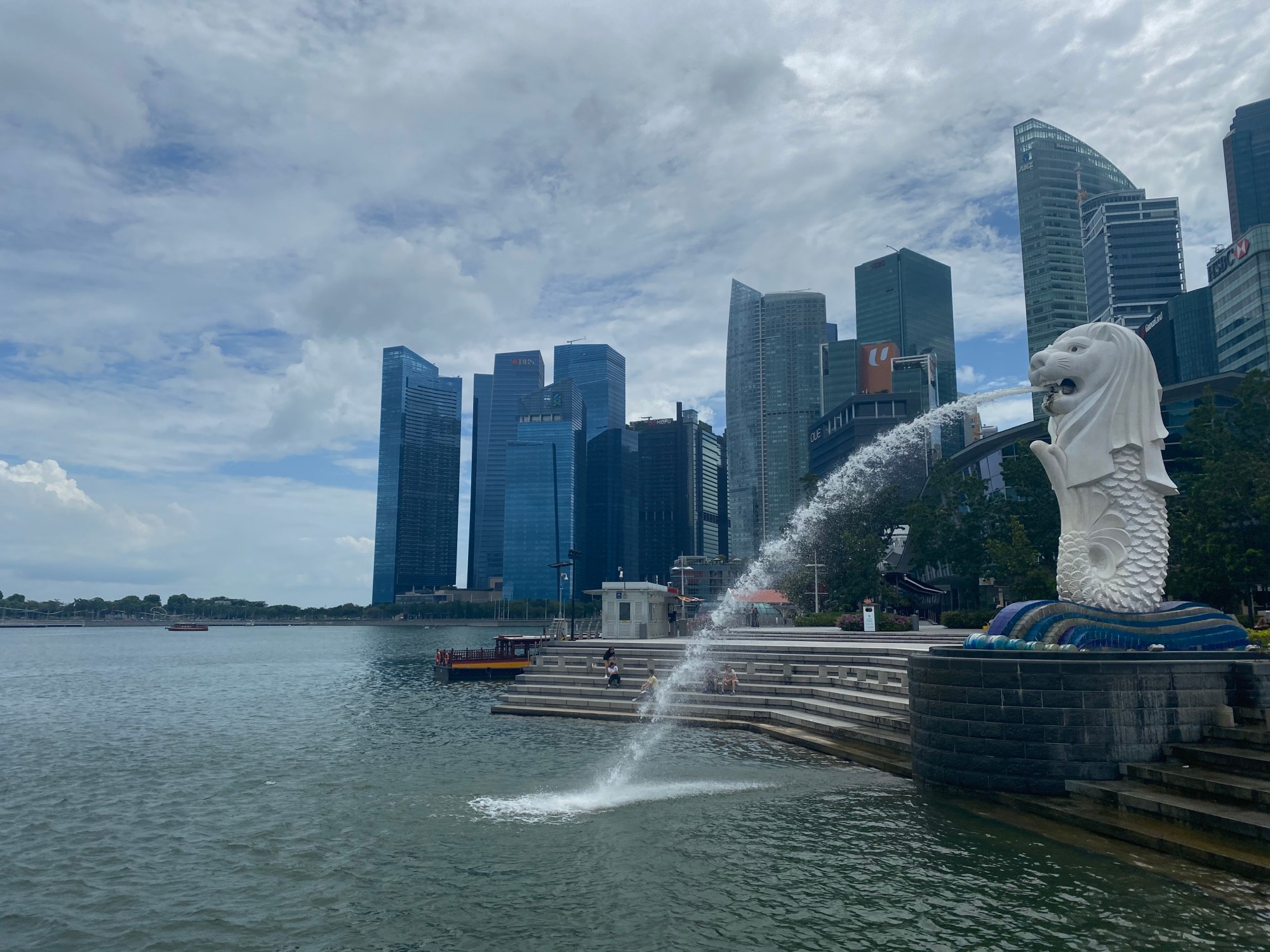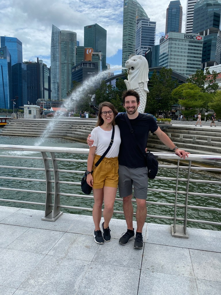 All I know is that the merlion is the city’s mascot and it has something to do with once being a fishing village and also being known as the lion city. Put them together. Logical leap. Somehow it’s still confusing… okay I can’t really explain this one it turns out. It looks awesome though and it’s likeness is everywhere! We walked to the water where the famous statue sits and laughed about why for awhile.