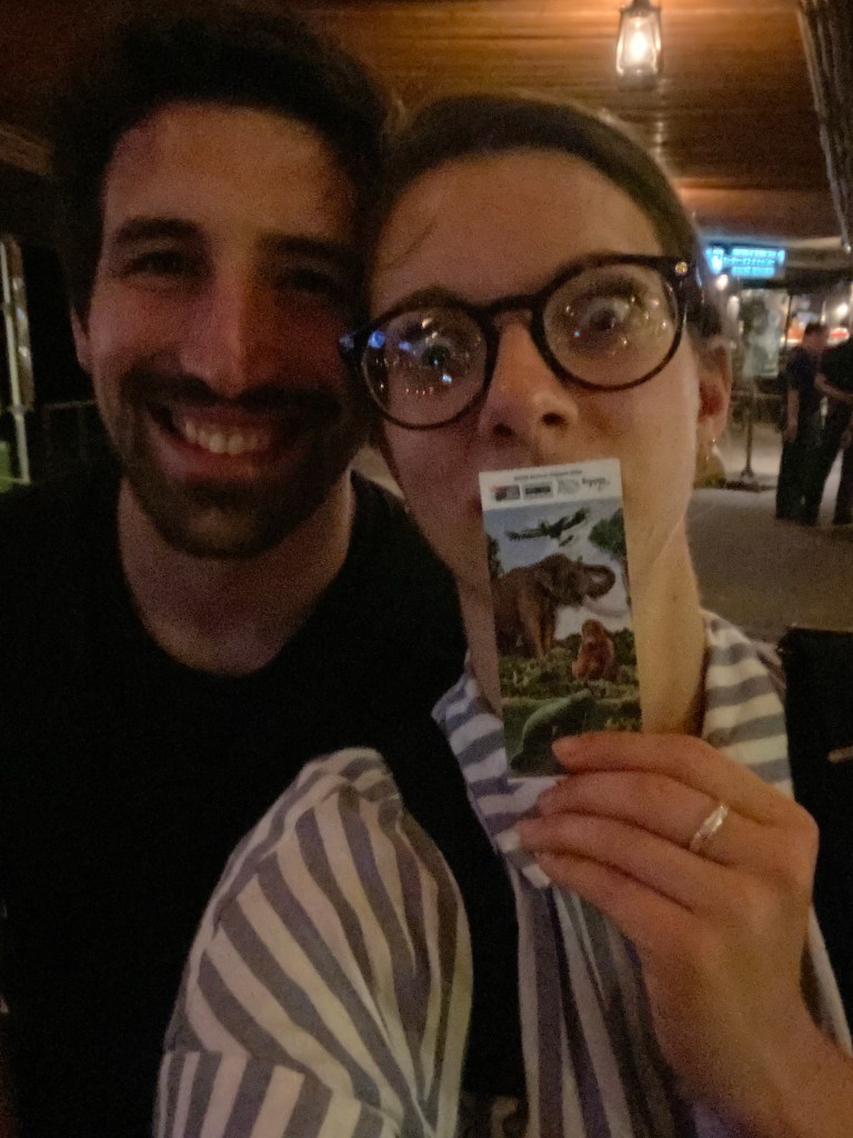 I felt all vibrate-y as we approached the zoo. I LOVE ZOOS. We spent hours exploring in the dark, which turns out is exciting and super creepy at the same time. Have you heard a tiger roar in the dark from somewhere nearby? We rode in a little open air safari tram and went past a few animal exhibits where there was no fence. We can truthfully say that all that was between us and a pride of lions today was a small steep moat. No glass or fences of any kind! We got so close to some tapirs I’m pretty sure I could have touched one! At one point Max walked through an open bat exhibit where bats just fly freely all around you. I have done this in the past and screamed involuntarily as bats flew close enough to ruffle my hair so I opted to meet him at the other side about two minutes later. (He definitely came out looking pretty rattled!) It was so fun to see all the animals in a new light (literally), and we left the zoo with the biggest goofiest grins.
