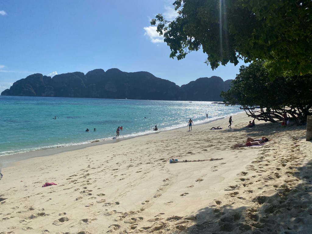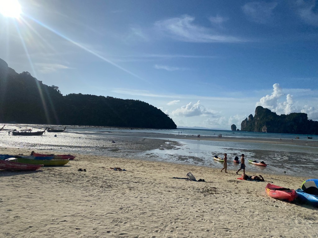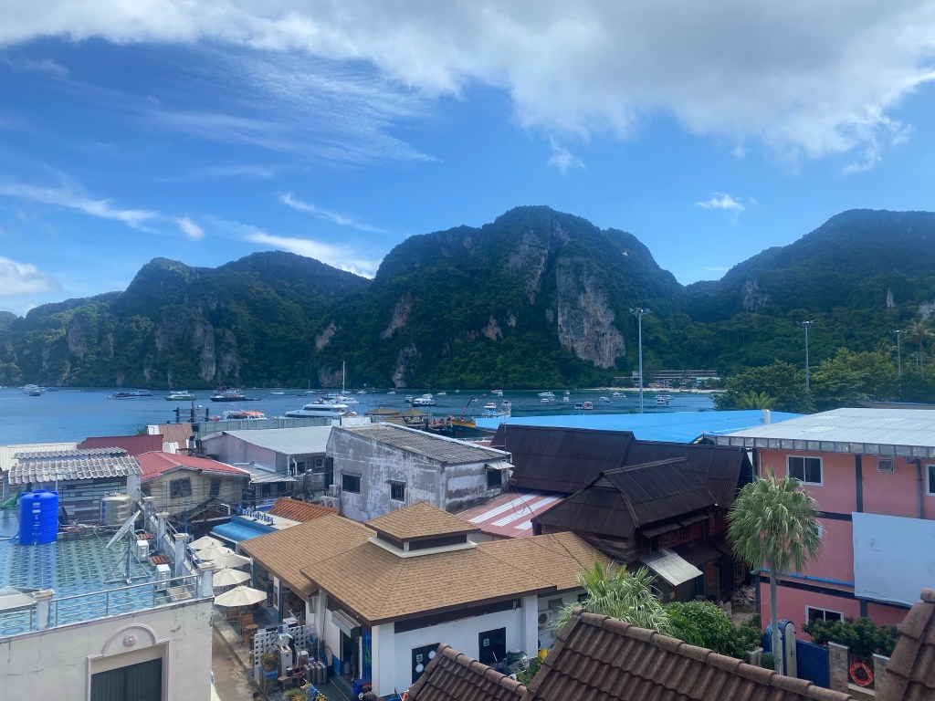 When we pulled up to Koh Phi Phi I stepped off the boat and was smiling so big. I think this is exactly what I’ve been looking for. Palm trees and greenery covered every inch that didn’t have a stepping stone path or a sandy walkway. Buildings poked up through the trees and I could see my hotel from the pier just a block away. I booked a hotel specifically so I could get a view of the bay when I woke up in the morning, and they’re so reasonably priced it’s barely different from a private hostel room in some places. The main centre of the island is made up of 2 parallel streets that take maybe three minutes to walk between, and a beach running along both sides. Little local restaurants and bars line the roads, and it just feels so relaxed and small and easy.