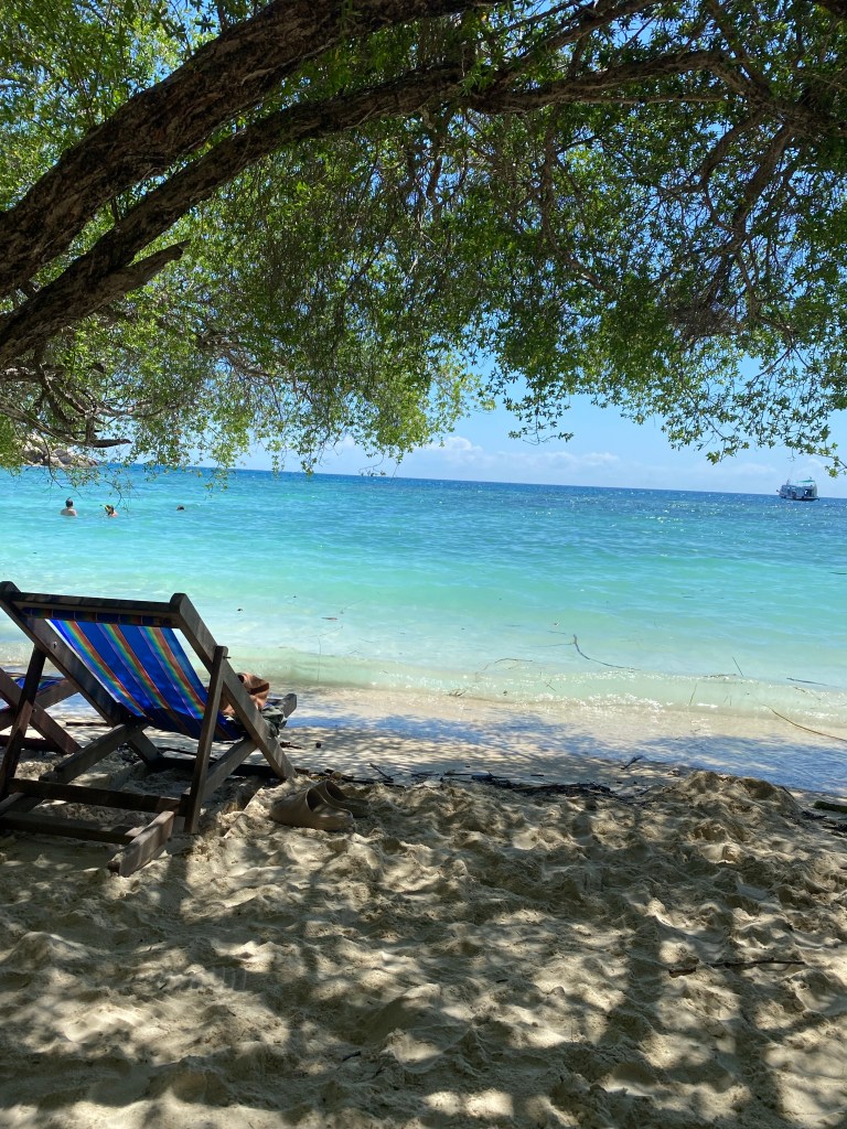 Freedom beach is so beautiful and blue and inviting. A line of trees runs all along the beach casting bits of shade onto the sand where chairs were set up just waiting to be claimed. I found one of the last ones, dragged it into the sun and proceeded to sit there for hours, reapplying sunscreen every time I went to jump in the water or snorkel above the rainbow fish gathering in the bay.