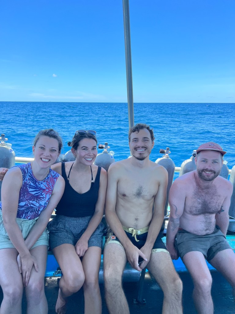 I woke up again at ass o’clock, ready and excited (in a bittersweet way) for my final dive day with Roctopus. I’d extended my time in Koh Tao through today so I could join in on ‘Sail Rock Sunday’ which is the most sought after dive in the entire Gulf Of Thailand. It was quite a trek to get out there, but an hour and a half on the boat passed in the blink of an eye as I chatted with Ethan and Nina, the American couple from yesterday. Our group was joined by Angus, an Aussie who I’d joked around with on and off the last few days who was finishing off his open water certificate. The four of us were with dive master Harry, who did my refresh on the first day and who was very fun to dive with because he would point things out I would never have noticed, and somehow made under water jokes constantly.