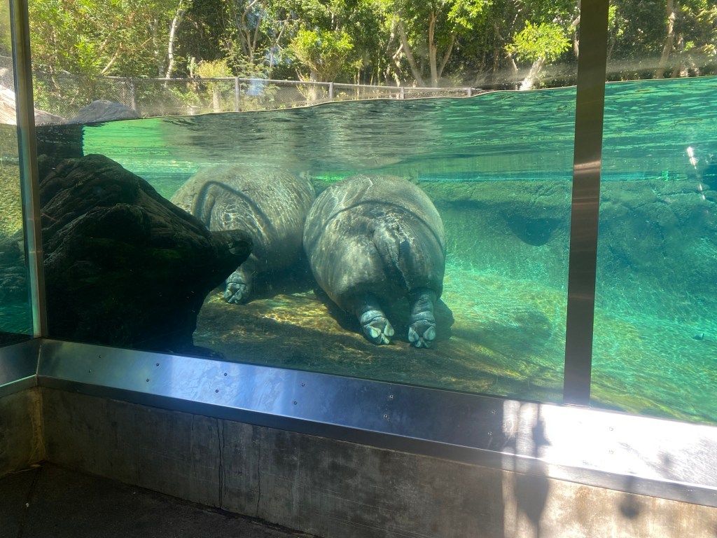 - Underwater sleeping Hippos, whose bums were right near the glass.