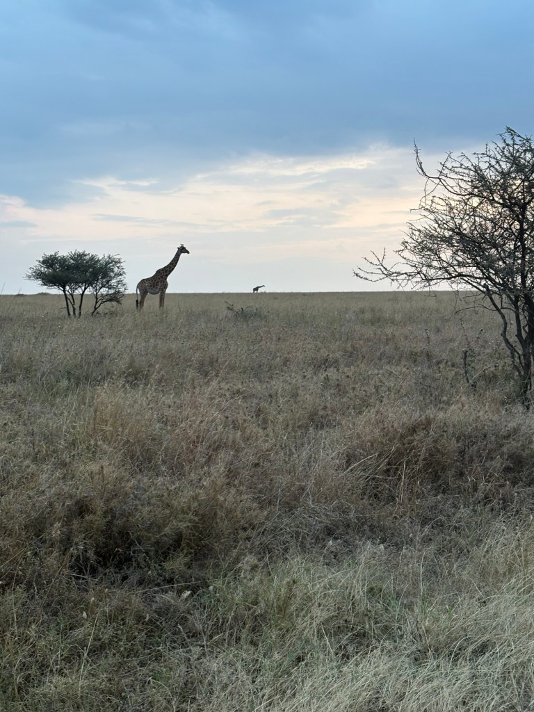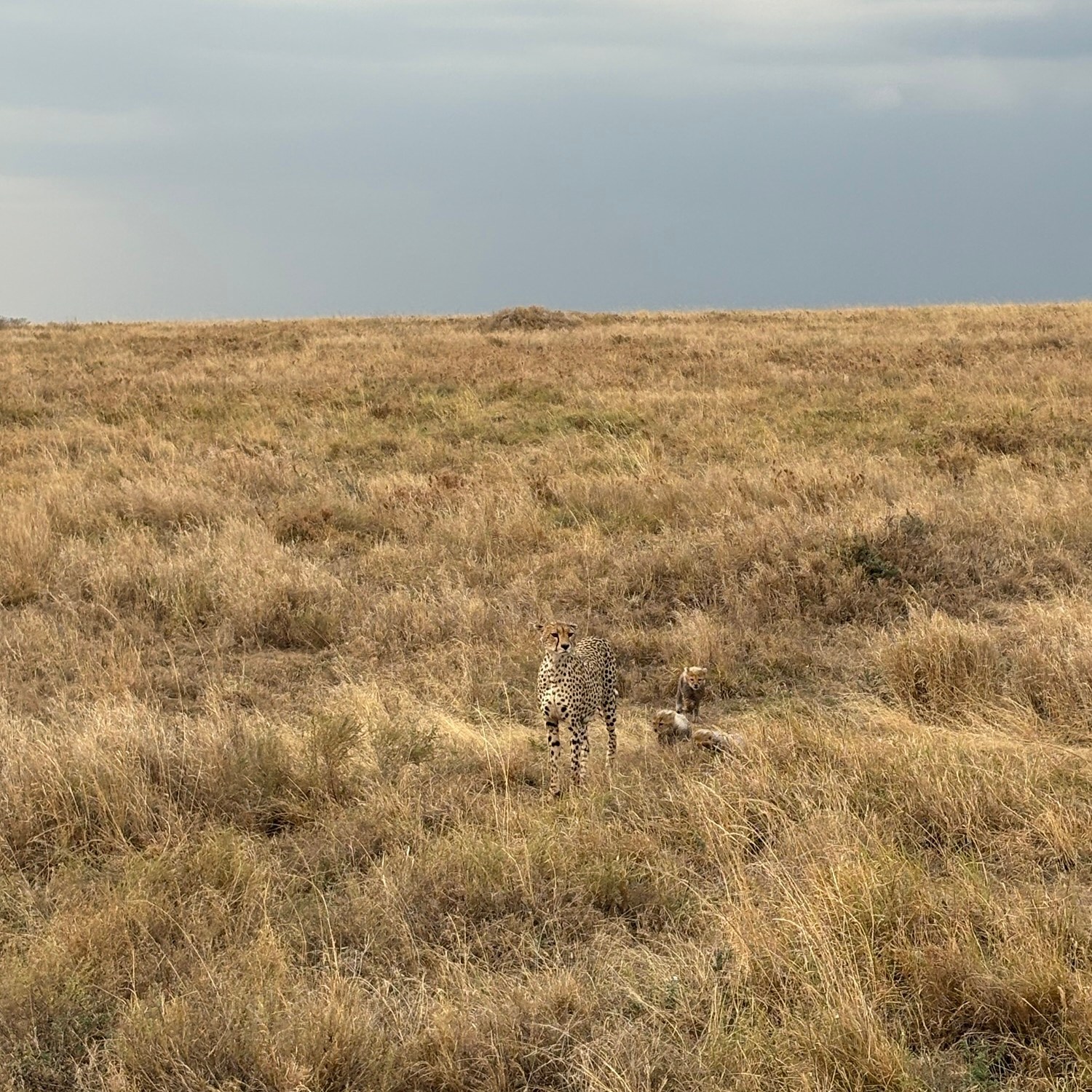 We came across a few groups of heartbeast antelopes, topi antelopes, some more ostriches, obviously more gazelles, and then chatter on the radio had us breaking new trail towards a cheetah sighting, despite the setting sun. Isaac spotted it and circled around a lone female cheetah, who was watching us warily, when the grass behind her shuffled and three baby cheetahs pounced out of the tall grass. I think they might have been the actual cutest little things I have ever seen. It was clear she wasn’t pleased to have vehicles circling her kittens, so when she broke into a run (babies bounding behind) we didn’t follow. I can’t believe I got to see a cheetah literally run off into the sunset. As we pulled away a couple of spotted hyenas padded off in the distance, and a dikdik (imagine a teeny tiny deer with two straight little horns) poked its head out of the bush next to the vehicle.