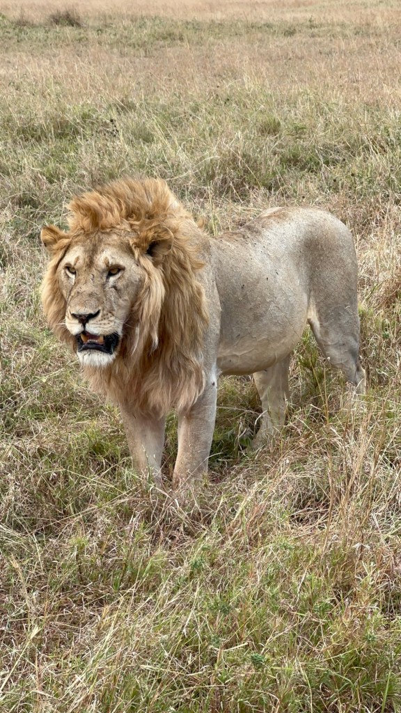 We saw a bunch more giraffes, a jackal and some zebras when we heard a call on the radio for a male lion, which we hadn’t seen yet. We all went pretty silent as we all waited with bated breath to see if we would find him. Here kitty kitty kitty!