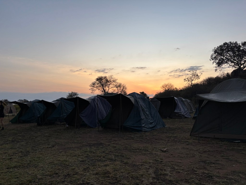 By mid afternoon we needed to start making our way back towards the lip of the Ngorongoro crater, as that’s where camp was being set up for the night. I haven’t mentioned that Maasai people live in the national park so we’ve been seeing them all over, herding their animals and waving their wares at us as we pass by (honey seems to be a common one). I was really sad to be leaving the Serengeti so quickly, but also how much more could I ask for? We have seen 4 out of the big 5 animals in ways that are extremely rare. All that was left to see was a rhino, which we technically saw from a lookout point yesterday but it was so far away it was still a pin prick in the binoculars! I am going to say that counts though, if we don’t see another.