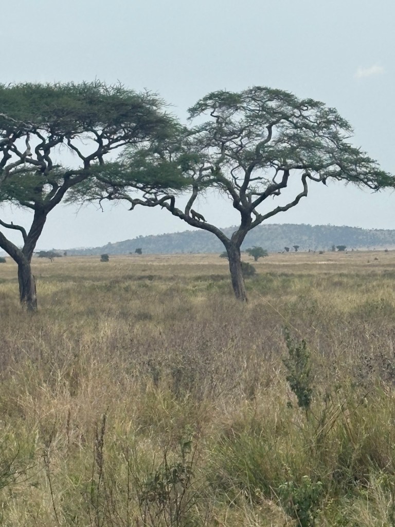 We caught the tail end (literally) of a mother leopard jumping out of a tree and disappearing into the grass… only to then see her young son hauling an entire gazelle up into the tree. Our guide told us that he is a teenager and mom is likely trying to teach him a lesson about securing his kill. Twice we watched him drag the gazelle up into the tree, snack a little bit before accidentally dropping it, and then attempt to bring it back up. He was a little too far away for clear photos, and mom was hidden somewhere in grass, but getting to see this specific moment was incredibly lucky.