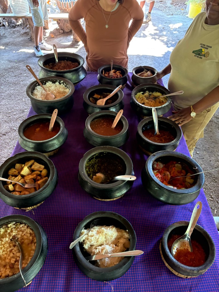 Sadly our safari had to come to an end, and it was a really long drive to get to our next stop, a peaceful village called Mto Wa Mbu. Almost our entire car dozed off on the drive there so before we knew it we were hopping out into the sun for a traditional Tanzanian lunch of cardamom cinnamon rice, ugali (cornmeal dough), stewed beef, sardines, tomato salad, spiced okra, fried plantains and a piripiri spicy sauce to top it all off. I’ve really been wanting to try more local food so I was very pleased that it was so delicious!