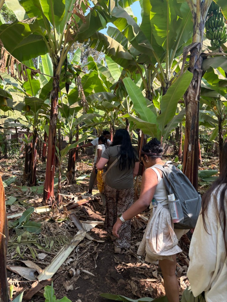 The locals of the village took us on a tour and we learned all about how the village is a melting pot of over 120 different tribes, with multiple religions and traditions. They emphasized how the village is peaceful and everyone accepts and appreciates the differences that all the tribes bring to their lives. A large portion of the income for the village is based on banana farming, so the first stop was a farm where they described how all parts of the banana tree are used, much of which is in construction of homes. I had no idea that banana trees only produce fruit once and then need to be cut down!